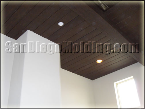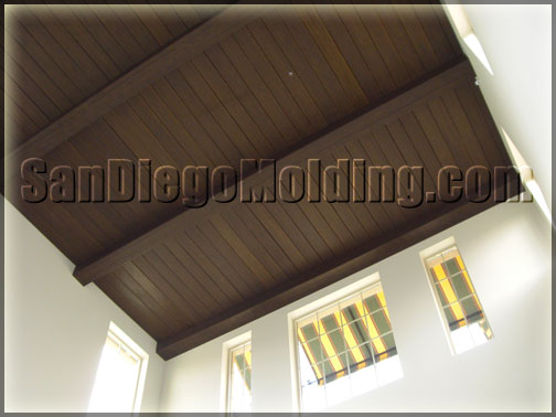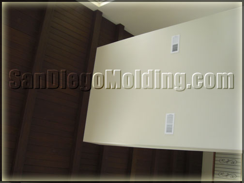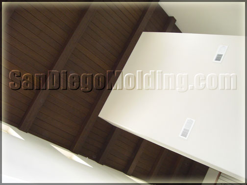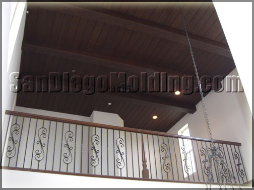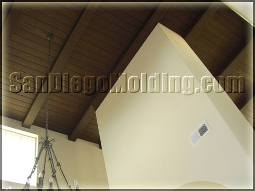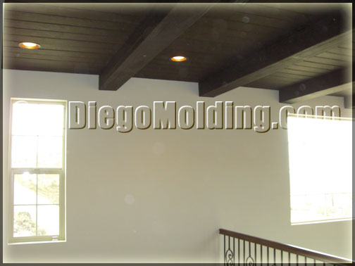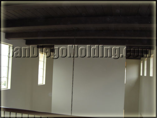 This Faux wood Ceiling rafters and beams are really a dominant feature in this high 2 story ceiling living room. This Scripps Ranch “Stonebridge” Home is decorated with a very rustic tasteful design and the rustic style ceiling we installed sure carries out the old world Tuscan tone the owners wanted to have. We matched the color of the beams to the existing dark walnut wood baseboard molding and cabinets throughout the house. More faux projects |